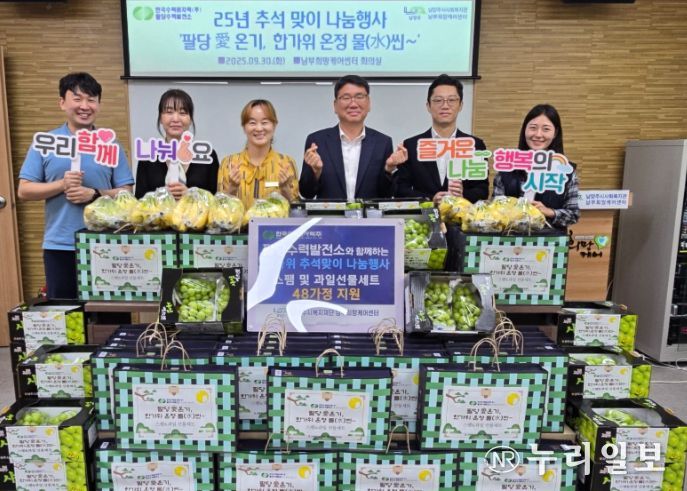 (누리일보) 남양주시는 9월 30일 남부희망케어센터가 한국수력원자력(주)팔당수력발전소의 후원을 받아 ‘팔당愛 온기, 한가위 온정 물(水)씬~’이라는 이름으로 2025년 추석 명절맞이 나눔행사를 진행했다고 밝혔다.