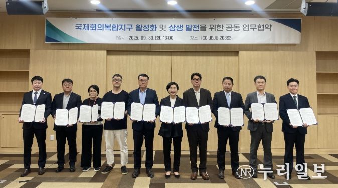 (누리일보) 제주국제컨벤션센터(대표이사 이선화, 이하 ICC JEJU)는 9월 30일(화) 신라호텔 제주, 롯데호텔 제주, 파르나스호텔 제주 등 제주국제컨벤션센터 주변 숙박 및 관광시설 11곳과 ‘제주 국제회의복합지구 활성화 및 상생 발전을 위한 업무협약’을 체결했다.
