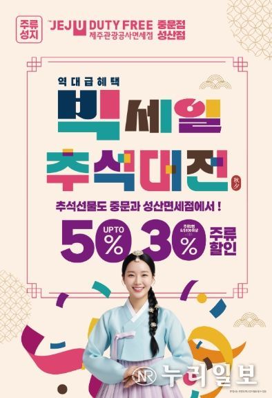 (누리일보) 제주관광공사는 추석을 맞아 중문면세점과 성산면세점에서 10월 한 달간 대대적인 세일을 진행하는 등 풍성한 혜택을 제공한다고 1일 밝혔다.