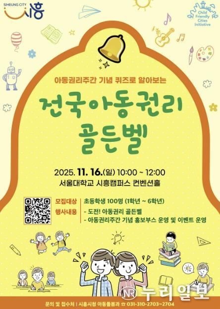 (누리일보) 시흥시는 오는 11월 16일 오전 10시, 서울대학교 시흥캠퍼스 컨벤션홀에서 열리는 ‘퀴즈로 알아보는 전국 아동권리 골든벨’에 참가할 초등학생을 10월 31일까지 모집한다.