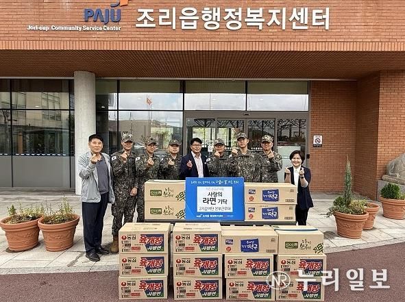 (누리일보) 파주시 조리읍은 지난 29일, 제2기갑여단 본부근무대가 추석을 맞아 지역 내 어려운 이웃을 돕기 위해 컵라면 등 즉석식품 16상자를 기탁했다고 밝혔다.