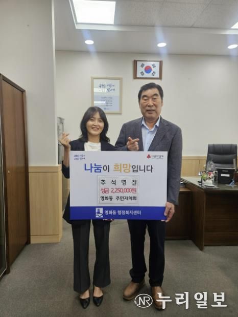 (누리일보) 수원시 장안구 영화동 주민자치회는 지난 1일, 추석 명절을 앞두고 관내 도움이 필요한 이웃들을 위해 성금 225만원을 기부했다고 밝혔다.