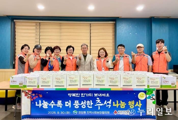 (누리일보) 의정부시 장암동주민센터는 9월 30일 추석 명절을 맞아 장암동 지역사회보장협의체와 함께 ‘나눌수록 더 풍성한 추석’ 나눔 활동을 실시했다고 밝혔다.