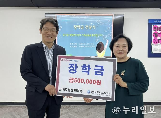 (누리일보) 라의숙 군포시 궁내동통장협의회장은 10월 1일 군포e비즈니스고등학교에 장학금을 전달하며 지역 청소년들의 꿈을 응원하는 뜻깊은 나눔을 실천했다.