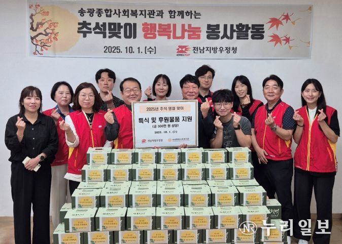 (누리일보) 전남지방우정청은 지난 1일 추석 명절을 맞아 광산구 소재‘송광종합사회복지관’을 방문하여 배식 봉사활동 및 후원물품 전달행사를 진행했다고 밝혔다.