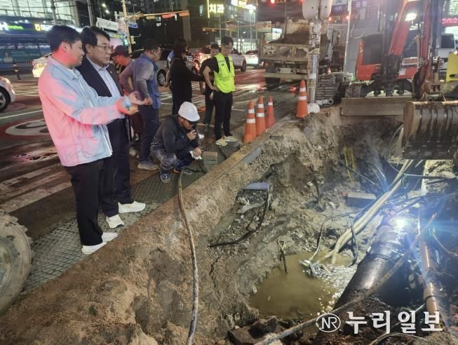 (누리일보) 조성대 남양주시의회 의장이 지난 1일 저녁 평내동 일대 노후 상수도관 교체 현장을 방문해 단수로 인한 주민 불편이 최소화될 수 있도록 신속한 복구를 주문했다.