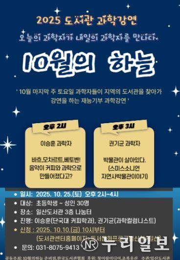 (누리일보) 고양특례시 일산도서관에서는 과학자들의 재능기부 도서관 과학 강연프로그램 ‘10월의 하늘’을 운영한다.