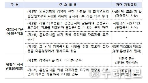 (누리일보) 공정거래위원회는 보건·의료생활협동조합 및 연합회(이하 ‘의료생협 등’)에 대한 관리·감독을 강화하기 위해 사업결산 보고서 등을 경영공시하도록 하는 내용으로 『소비자생활협동조합법』(이하 ‘생협법’)이 개정(’25.4.1.)됨에 따라 의료생협 등이 공시해야 하는 경영공시 사항과 같이 법률에서 위임된 사항과 그 시행에 필요한 사항을 담은 생협법 시행령 및 시행규칙을 개정하여 2025년 10월 2일부터 시행한다고 밝혔다.