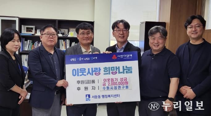 (누리일보) 수원시정연구원과 수원시정연구원 사우회가 지난 10월 2일, 추석을 맞아 나눔을 실천하고자 성금 200만원을 서둔동 행정복지센터에 기탁했다. 이번 기탁금은 수원시정연구원장과 수원시정연구원 사우회에서 각 100만원을 모아 마련한 것이다.