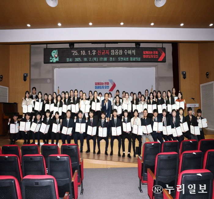 (누리일보) 오산시는 지난 10월 2일 오산시청 대회의실에서 2025년 신규 임용 공직자 52명을 대상으로 임용장 수여식을 개최했다고 밝혔다.