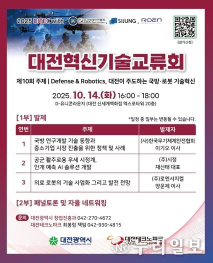 행사는 관심 있는 시민 누구나 참여할 수 있으며, 참가 신청은 네이버폼 또는 포스터 상단 QR코드를 통해 가능하다. 자세한 사항은 대전테크노파크 기술사업화팀으로 문의하면 된다.