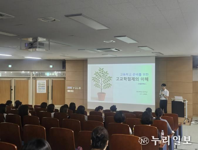 이번 연수 주요 내용은 ▲고교학점제 전반의 이해 ▲ 학점 이수 인정 기준 ▲최소 성취수준 보장지도의 이해 ▲ 변화하는 대입 제도 ▲ 슬기로운 고등학교 생활 준비하기 등으로 구성되어 각 중학교별 맞춤형 연수로 진행됐다.