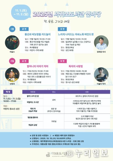 (누리일보) 제주도교육청 서귀포도서관은 11월 1일과 2일 양일간 지역 주민이 함께 즐기는 독서문화 축제 ‘2025년 서귀포도서관 한마당’을 개최한다.