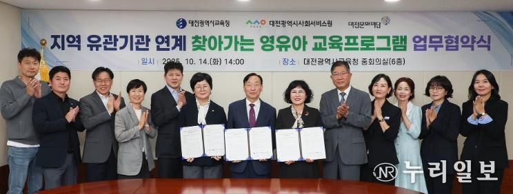 (누리일보) 대전시교육청은 10월 14일 대전광역시사회서비스원 및 대전문화재단과'지역 유관기관 연계 찾아가는 영유아 교육프로그램'운영 업무협약을 체결했다고 밝혔다.