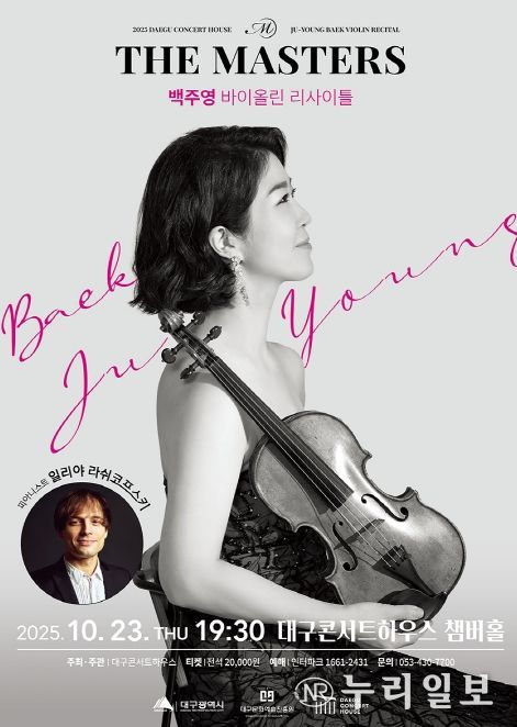 (누리일보) 대구콘서트하우스의 독주회 시리즈 공연인 ‘The Masters’(이하 ‘더 마스터즈’)의 '백주영 바이올린 리사이틀'이 10월 23일 오후 7시 30분 대구콘서트하우스 챔버홀에서 개최된다.