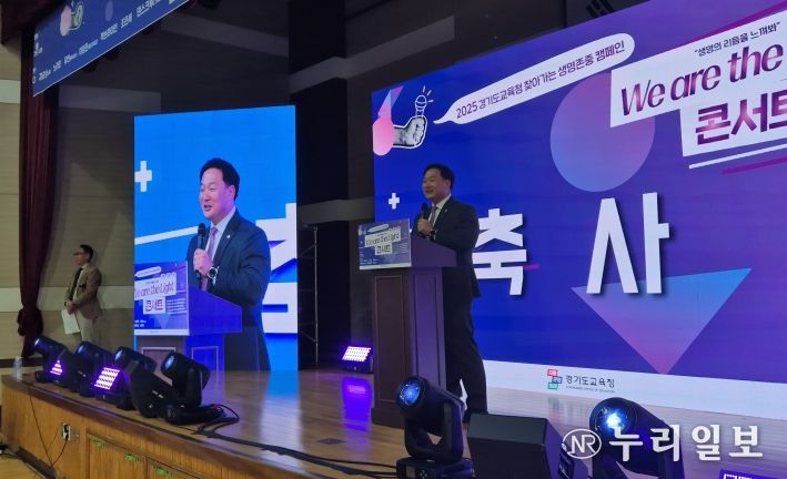(누리일보) 경기도의회 고준호 의원(국민의힘, 파주1)은 15일 파주 한가람중학교에서 열린 경기도교육청 주관 ‘찾아가는 생명존중 콘서트’에 참석해 학생들과 함께 생명의 소중함과 희망의 메시지를 나눴다. 이번 콘서트는 경기도교육청이 청소년 자살 예방과 생명존중 문화 조성을 위해 추진 중인 순회형 문화 프로그램으로, 9월부터 11월까지 도내 5개 학교를 순회하며 열린다. 파주에서는 고준호 의원의 노력으로 한가람중학교가 유일하게 선정됐다. 학생과 교직원, 학부모 등 700여 명이 한자리에 모인 체육관은 음악과 웃음, 그리고 서로를 향한 따뜻한 응원으로 가득 찼다. 이날 무대는 청소년들이 공감할 수 있는 아티스트들로 꾸며져 가수 골든차일드 이장준, 그룹 노라조, 조빈, 우디, 그라비티, 잭브라이언 등이 출연해 음악과 퍼포먼스로 생명의 소중함과 희망의 메시지를 전했다. 고준호 의원은 축사를 통해 “요즘 세상은 빠르고, 경쟁은 치열하다. 그 속에서 우리는 종종 ‘나’의 가치를 잊고, 남이 정한 기준에 나를 맞추려 애쓴다. 하지만 존재한다는 그 사실 하나만으로도 이미 완벽한 이유가 있다”며 “생명존중은 거창한