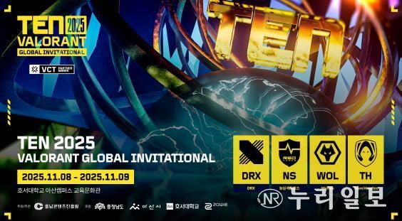 (누리일보) (재)충남콘텐츠진흥원은 글로벌 인기 FPS 게임 발로란트(VALORANT)의 프로 초청 대회 ‘TEN 2025 VALORANT Invitational’이 오는 11월 8일부터 9일까지 충남 아산 호서대학교 아산캠퍼스 교육문화관에서 개최된다고 밝혔다.
