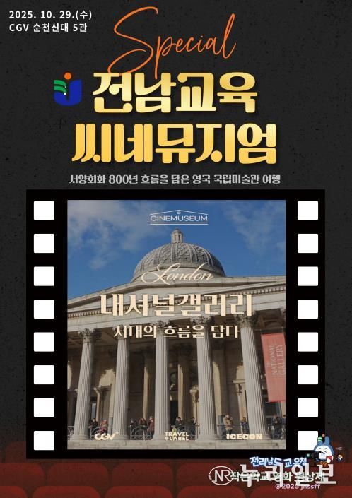 (누리일보) 전라남도교육청은 오는 29일 CGV순천신대 5관에서 ‘전남교육씨네뮤지엄: 아트가이드와 함께하는 유럽 미술관 투어’ 프로그램을 운영한다.