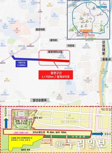 (누리일보) 대구광역시는 주민 숙원사업이자 지역 교통망 구축의 핵심과제였던 3차순환도로 동편구간(캠프워커~비상활주로) 도로 건설을 완료하고, 오는 11월 20일경 전면 개통한다고 밝혔다.