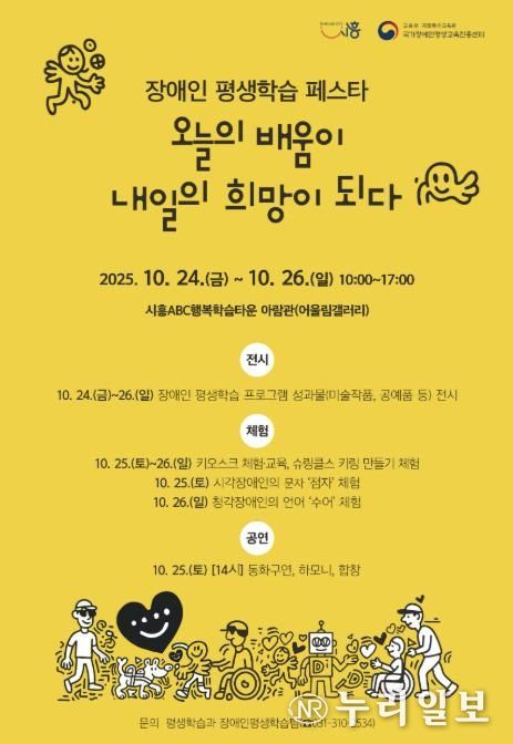 (누리일보) 시흥시는 오는 10월 24일부터 26일까지 3일간, 시흥ABC행복학습타운 아람관과 어울터 일원에서 ‘2025 장애인 평생학습 페스타’를 개최한다.