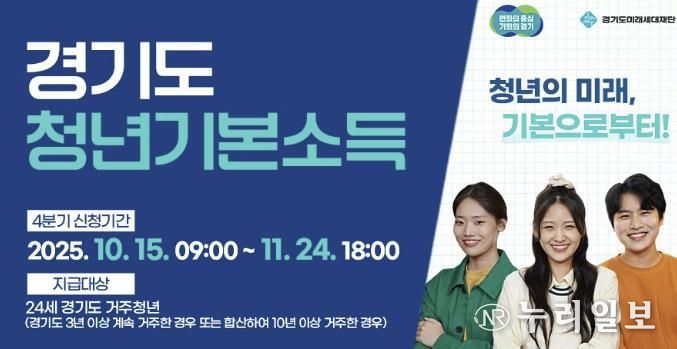(누리일보) 안산시는 다음 달 24일까지 관내 거주하는 24세 청년을 대상으로 ‘2025년 4분기 청년기본소득’ 신청 접수를 진행한다고 22일 밝혔다.