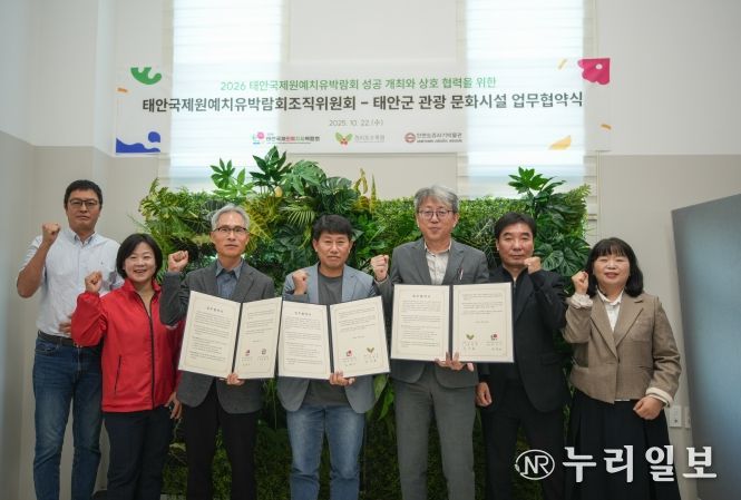 (누리일보) 태안국제원예치유박람회조직위는 10월 22일, 천리포수목원, 안면도 쥬라기박물관과 함께 ‘2026태안국제원예치유박람회 통합입장권 운영’을 위한 업무협약(MOU)을 체결했다고 밝혔다.