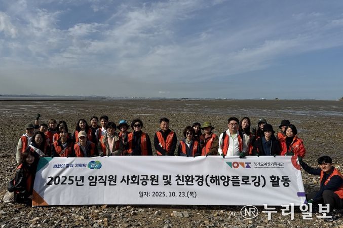 (누리일보) 경기도여성가족재단은 23일 화성시 고온항 및 궁평항 일대에서 임직원 36명이 참여한 가운데 ‘2025년 사회공헌 및 친환경 활동’(해양 플로깅)을 펼쳤다.