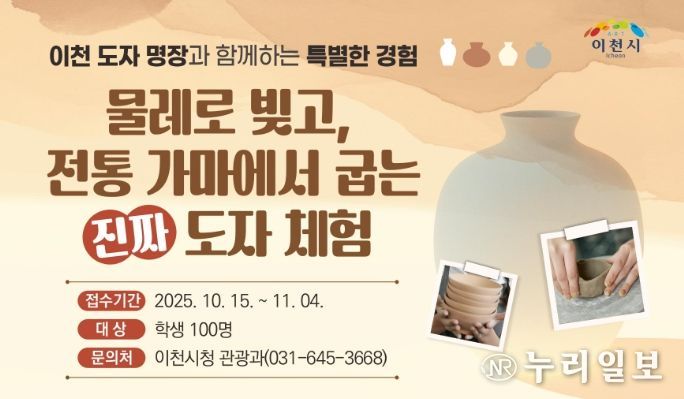 (누리일보) 이천시는 도자문화의 중심지 이천의 전통과 예술적 가치를 시민이 직접 체험할 수 있는 ‘전통 도자 제작·소성 체험 프로그램’을 운영하고, 참가자를 모집한다고 밝혔다.