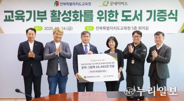 (누리일보) 전북특별자치도교육청은 24일 본청 5층 회의실에서 글로벌 아동권리 전문 NGO 굿네이버스로부터 문학․그림책을 기증받는 도서 기증식을 개최했다.