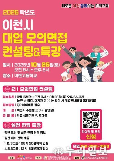 (누리일보) 이천교육지원청은 10월 25일 이현고등학교에서 ‘2026학년도 이천시 대입 모의면접 컨설팅 및 특강’을 운영한다.
