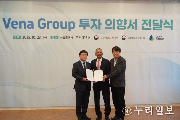 (누리일보) 국회 외교통일위원회 소속 차지호 국회의원(경기 오산시, 더불어민주당)은 23일 국회에서 뷔나(VENA) 그룹이 총 사업비 약 20조 원 규모의 재생에너지 및 인공지능(AI) 데이터센터 구축 사업 투자의향서(LOI)를 전달했다고 밝혔다.