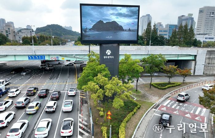 (누리일보) 광주광역시는 ‘독도의 날’인 25일 오전 10시 25분부터 시정홍보 전광판에 ‘독도의 모습’을 실시간 송출했다.