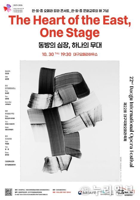 (누리일보) (재)대구문화예술진흥원 대구오페라하우스는 오는 10월 30일 오후 7시 30분, 제22회 대구국제오페라축제의 특별 공연으로 ‘2025 한·일·중 오페라 갈라 콘서트 – 동방의 심장, 하나의 무대’를 선보인다.