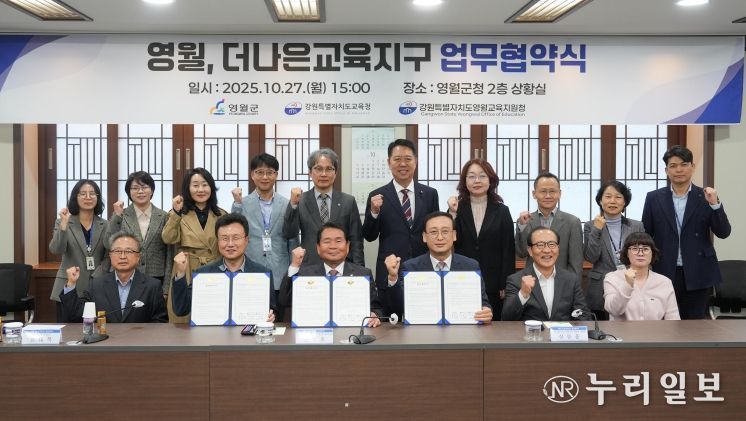 (누리일보) 강원특별자치도교육청은 영월군청(군수 최명서), 영월교육지원청과 10월 27일 영월군청에서 ‘영월 더나은교육지구 연장지정 업무협약’을 체결했다.