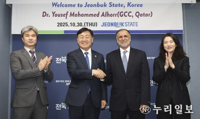 (누리일보) 전북특별자치도는 김관영 도지사가 30일 중앙협력본부에서 유세프 모하메드 알호르 카타르 글로벌탄소위원회(GCC·Global Carbon Council) 의장과 면담을 갖고, 탄소중립 및 지속가능 인프라 구축을 위한 협력 방안을 논의했다고 밝혔다.