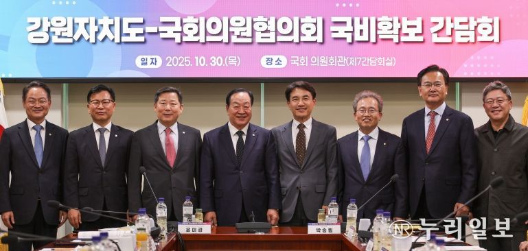 (누리일보) 김진태 강원특별자치도지사는 10월 30일 오후 2시, 국회 의원회관에서 도내 지역구 국회의원 7명과 함께 도 국회의원협의회를 열고 2026년도 국비 추가 확보 방안 등을 논의했다.