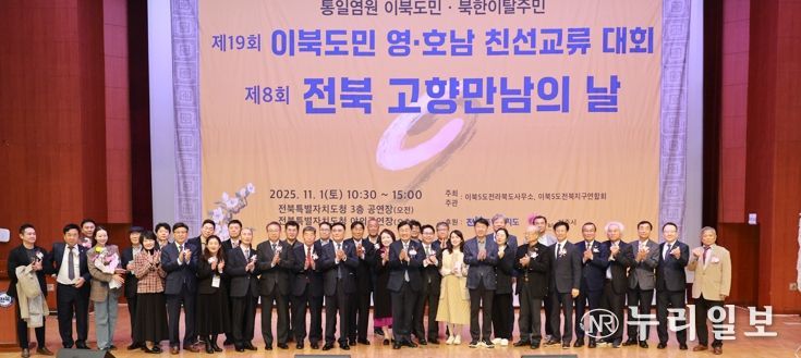 (누리일보) 전북특별자치도와 이북5도전북특별자치도사무소는 11월 1일 전북특별자치도청 공연장에서 ‘제8회 통일염원 이북도민․북한이탈주민 전북 고향만남의 날’ 및 ‘제19회 영호남 친선교류대회’ 행사를 개최했다고 밝혔다.