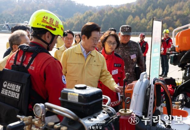 (누리일보) 이재명 대통령은 6일 오후 강원도를 방문해 관·군의 산불 진화 장비와 대응체계를 점검한 뒤, 동해안 산불 위험 지역을 시찰했다.
