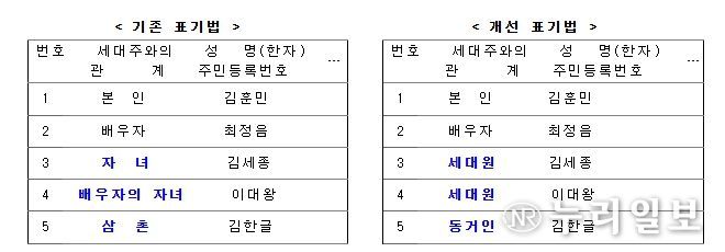 (누리일보) 앞으로는 등·초본 상 가족 관계 표기로 인한 재혼 가정의 사생활 노출을 방지하기 위해 세대주와의 관계 표기 방식이 개선된다.