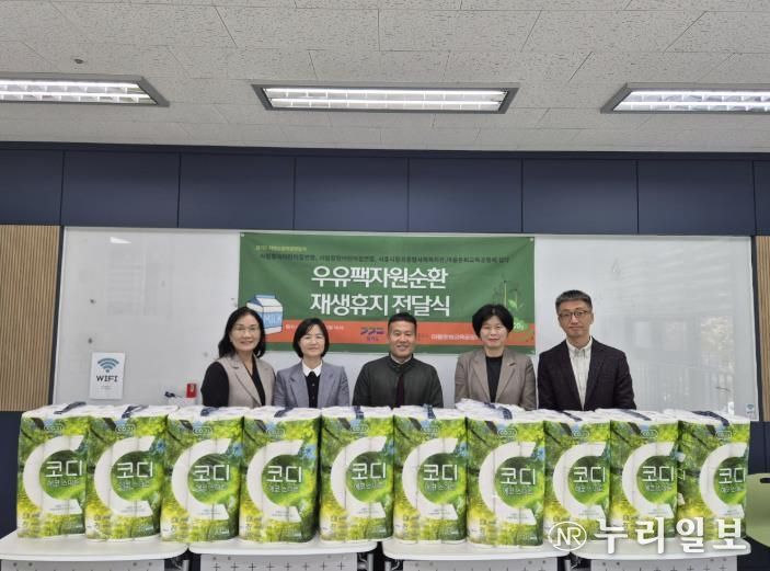 (누리일보) 지난 11월 12일, 시흥시장곡종합사회복지관에서 환경과 나눔을 담은 재생 휴지 360개 가 전달됐다. 이날 전달된 재생 휴지는 장곡동 내 시립어린이집장곡지역, 시립어린이집장현지역, 그리고 마을문화교육공동체 ‘담다’가 지난 7월부터 10월까지 4개월간 종이팩 교환사업을 통해 마련한 것으로, 지역 취약계층에게 지원될 예정이다.