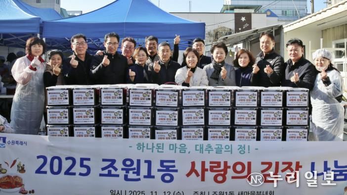 (누리일보) 수원시 장안구 조원1동은 12일 조원1동 환경관리원 쉼터에서 ‘2025년 사랑의 김장 나눔 행사’를 진행했다.