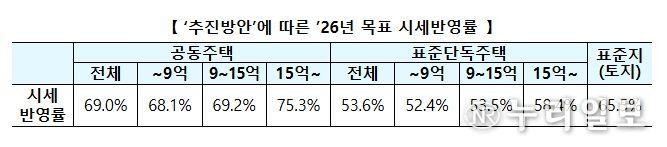 국토교통부 김윤덕 장관은 “현재 67개 제도에 활용되는 공적 기준가격인 부동산 공시가격은 국민 생활과 매우 밀접”하다고 하면서, “‘26년도 부동산 공시가격에 적용되는 시세반영률은 현재 수준으로 유지하되, 시세 산정의 정밀성도 높여, 부동산 시세 변동을 정확히 반영할 수 있도록 노력하겠다.”라고 밝혔다.