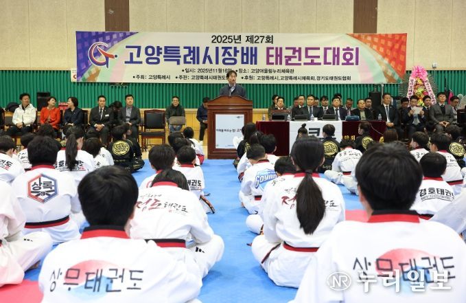 (누리일보) 2025년 제27회 고양특례시장기 태권도대회가 16일 고양어울림누리 체육관에서 개최됐다. 이동환 고양특례시장은 “갈고닦은 실력과 기량을 유감없이 발휘해 후회 없는 경기를 펼쳐주길”이라고 말했다.