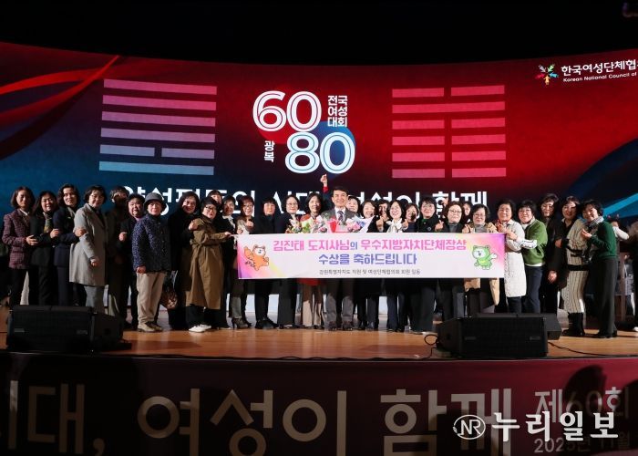 (누리일보) 김진태 강원특별자치도지사는 11월 18일, 서울 코엑스에서 열린 ‘제60회 전국여성대회’에서 우수지방자치단체장상을 수상했다.