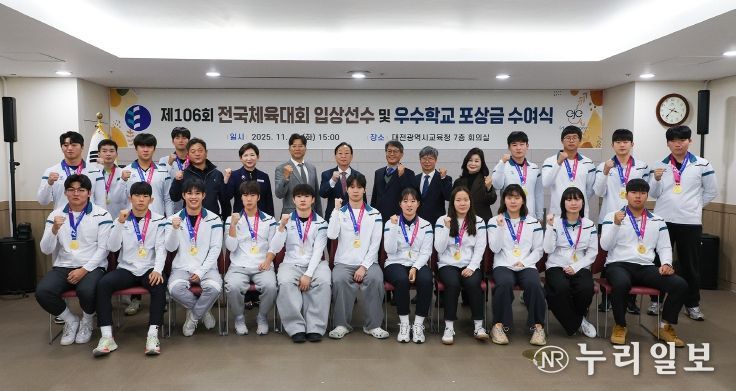 (누리일보) 대전시교육청은 11월 18일 오후 3시 본관 701호 회의실에서, 지난 10월 17일부터 23일까지 7일간, 부산광역시 일원에서 열린‘제106회 전국체육대회 학생선수 메달 입상자 및 우수학교 포상금 수여식’을 개최했다.