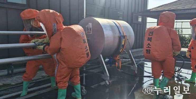 (누리일보) 전북특별자치도소방본부는 지난 19일 119특수대응단 화학구조대 청사에서 유해화학물질 누출 사고 대응 역량 강화를 위해 특수대응단과 소방서 간 합동훈련을 실시했다.