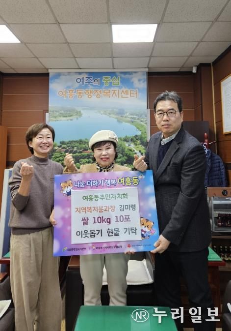 (누리일보) 여흥동주민자치회 지역복지분과 김미령 분과장은 지난 19일, 여흥동행정복지센터를 방문해 지역 내 어려운 이웃을 위한 쌀 10kg 10포(총 100kg)를 기탁했다.