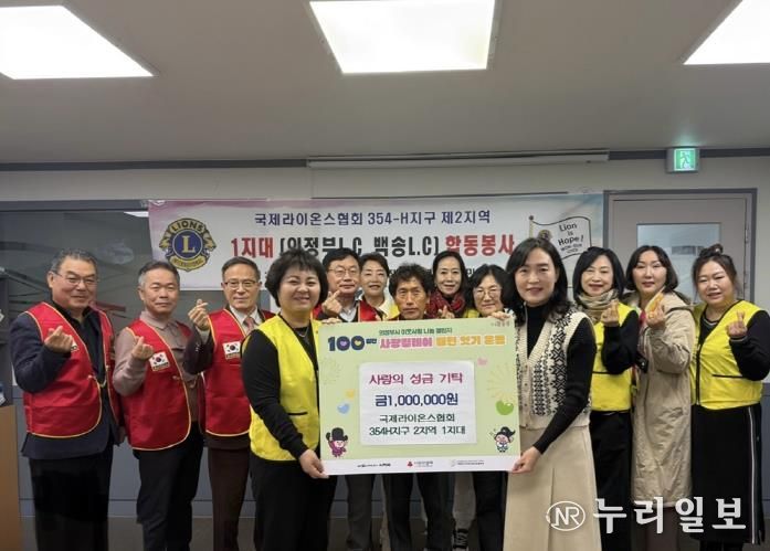 (누리일보) 의정부시 신곡2동주민센터는 11월 18일 국제라이온스협회 354-H 2지역 1지대가 성금 100만 원을 기탁하며 ‘100일간 사랑릴레이 배턴 잇기’에 동참했다고 밝혔다.