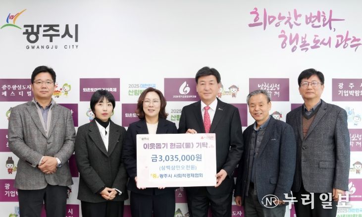 (누리일보) 광주시 사회적경제협회 소속 사회적경제 기업들이 ‘2025년 광주시 사회적경제 나눔장터’를 통해 마련한 판매 수익금 303만 5천 원을 20일 광주시에 이웃돕기 성금으로 기탁했다.