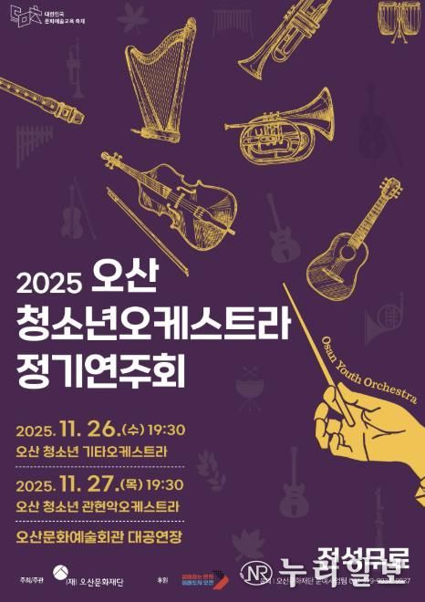 (누리일보) 오산문화재단이 주최하고 오산시가 후원하는 ‘2025 오산 청소년 오케스트라 정기연주회’가 오는 11월 26일부터 27일까지 오산문화예술회관 대공연장에서 이틀간 개최된다. 공연은 전석 무료로 시민 누구나 관람할 수 있다.